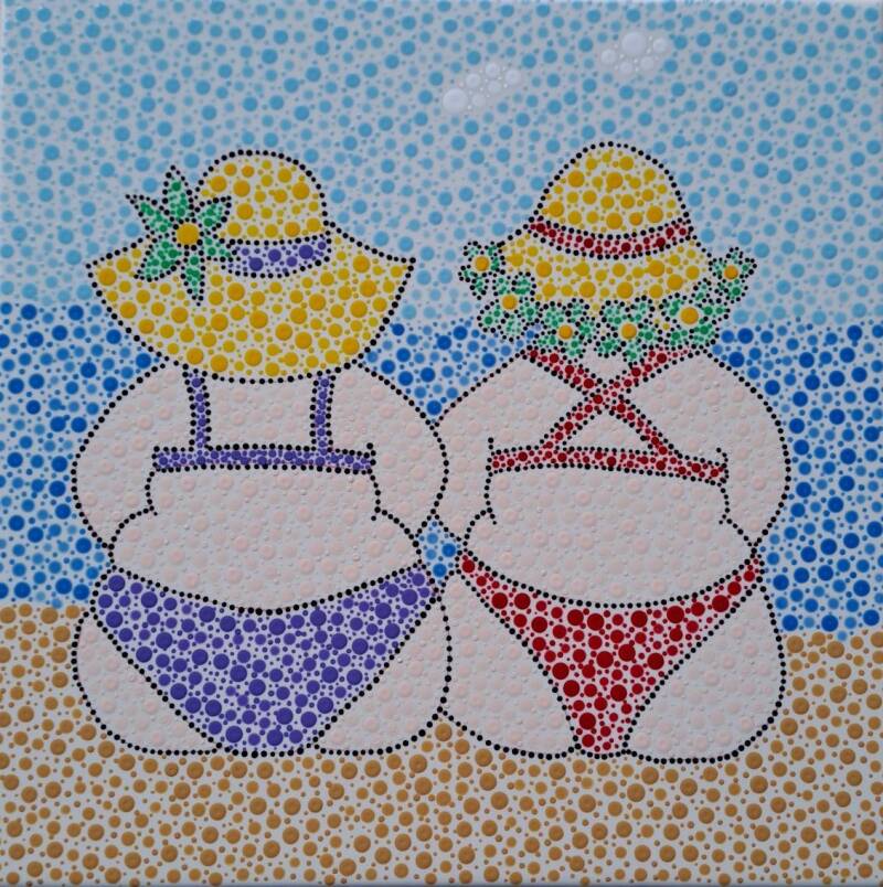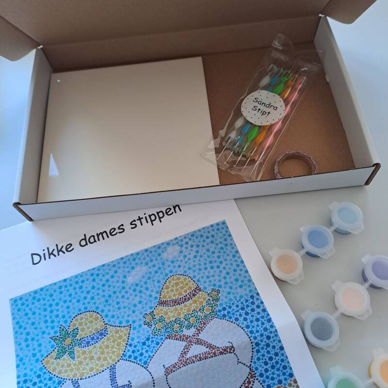 Lijkt het jou ook leuk om zelf aan de slag te gaan met 'stippen' en deze leuke tegel met dikke dames te maken? Dat kan!
